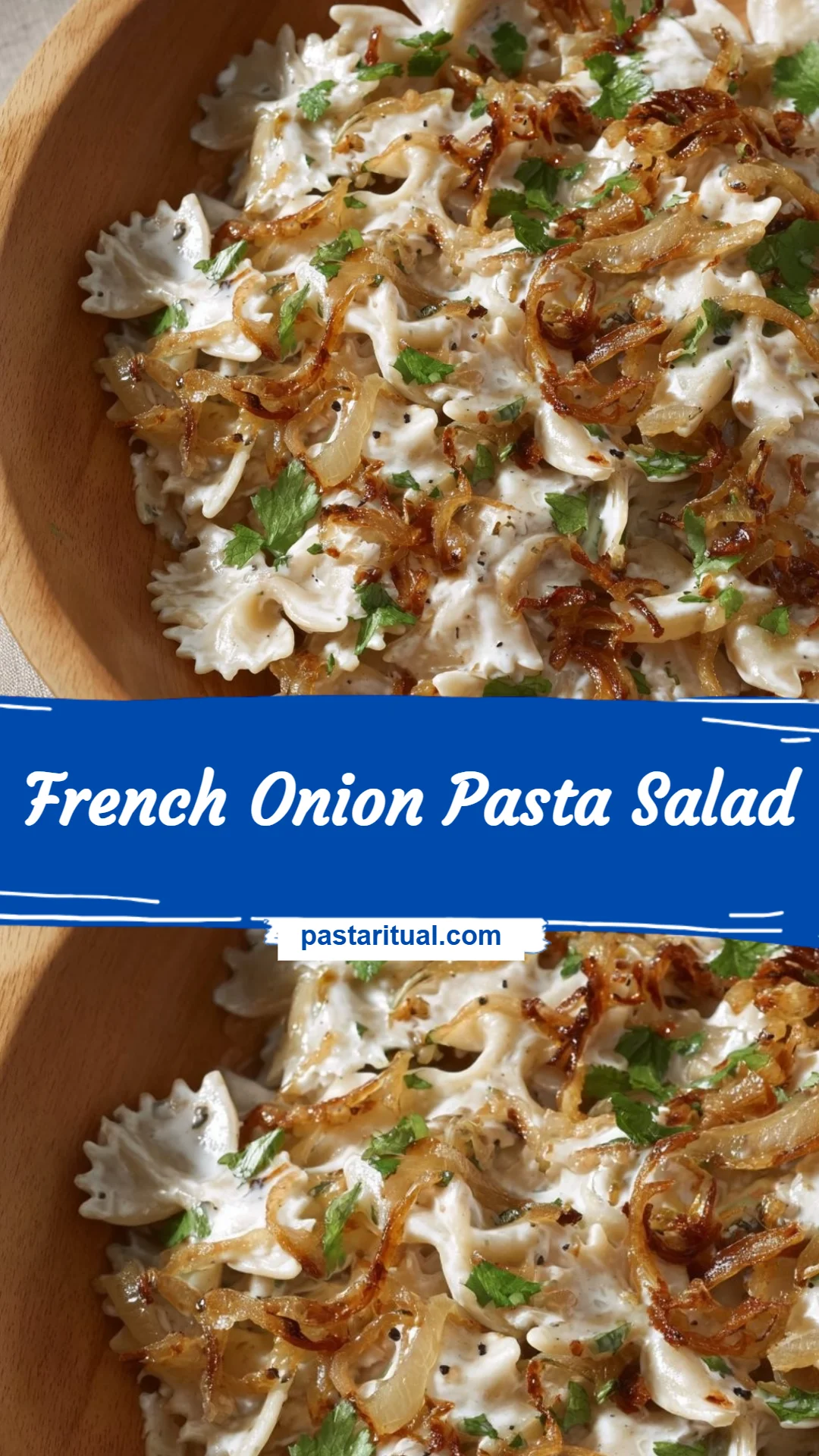 This French Onion Pasta Salad blends complex carbs, healthy fats, and flavorful vegetables for a balanced, satisfying dish. Farfalle supplies the energy-giving carbohydrates and a bit of protein, while the onions contribute fiber and vitamin C along with potent antioxidant compounds. Extra virgin olive oil adds monounsaturated fats, and the sour cream-plus-mayo dressing provides a creamy mouthfeel—use reduced-fat options if you want fewer calories. Choose whole-grain pasta to boost fiber and make this salad a great option for meal prep, lighter dinners, or potlucks where you want comfort without overindulgence.