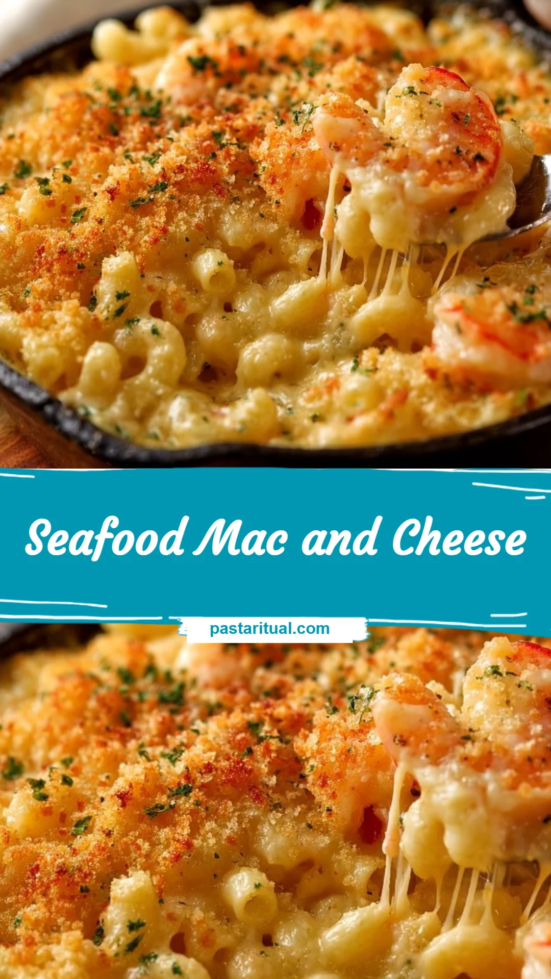 - Add the drained pasta and cooked seafood into the cheese sauce pot. Stir gently until everything is evenly coated. Taste and adjust seasoning. For a crunchy top, preheat oven to 375°F (190°C), transfer to a buttered baking dish, top with panko mixture and bake uncovered for 20 minutes.