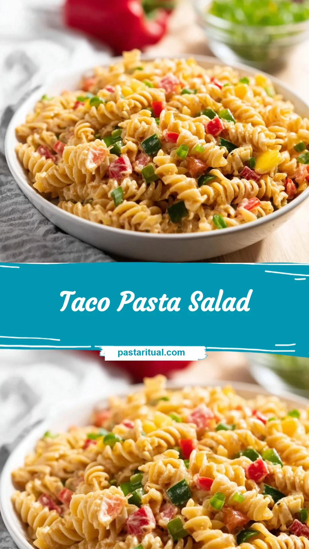 If you like an Italian twist sometimes, I link one of my favorite lighter salads later on; the Caprese version is a nice contrast to this creamy taco style and can inspire other mix-ins like fresh tomatoes or basil: Caprese Pasta Salad with Balsamic Glaze.